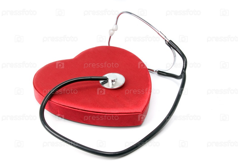 Стетоскоп и сердце на белом фоне