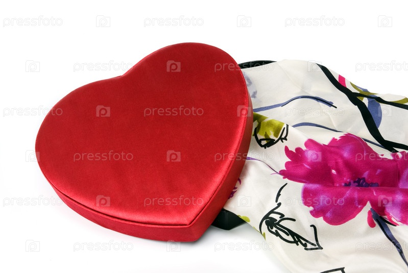 Шелковый платок с красным сердцем на белом фоне