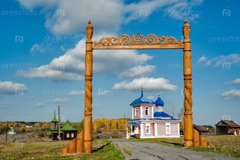 Деревянные ворота и часовня. Россия