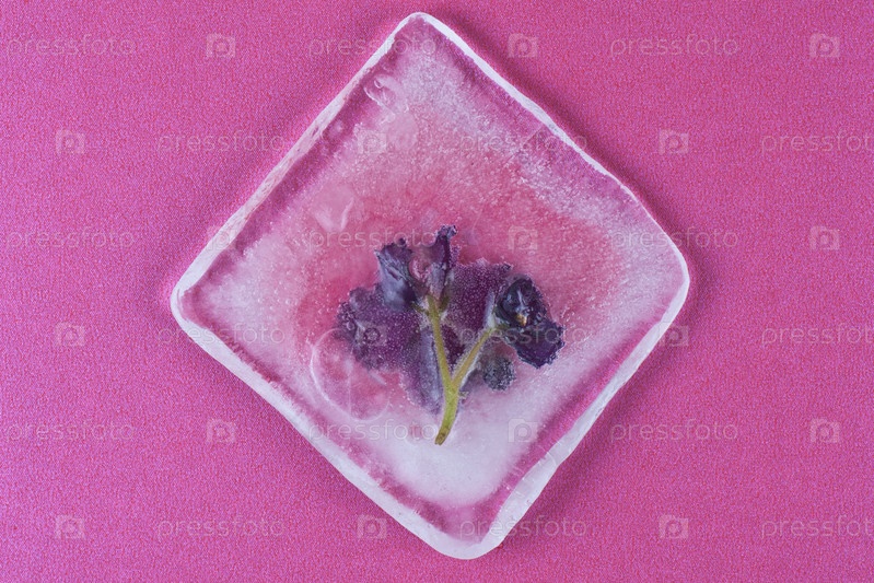 Фиолетовые цветы, замороженные в лед