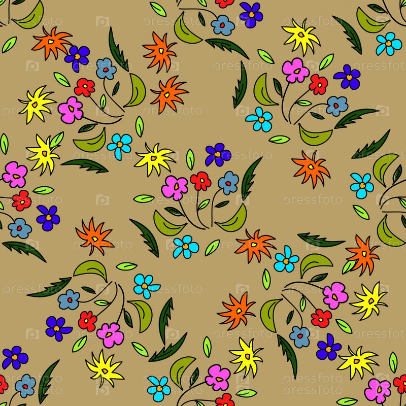 Бесшовный фон с цветами на бежевом фоне
