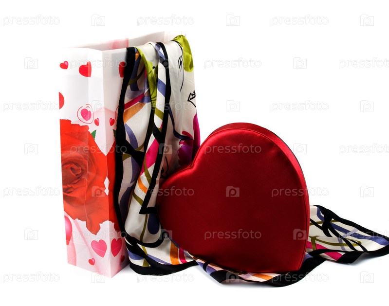 Подарочный пакет с красным сердцем на белом фоне