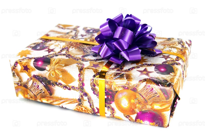 Подарочная коробочка с бантом на белом фоне