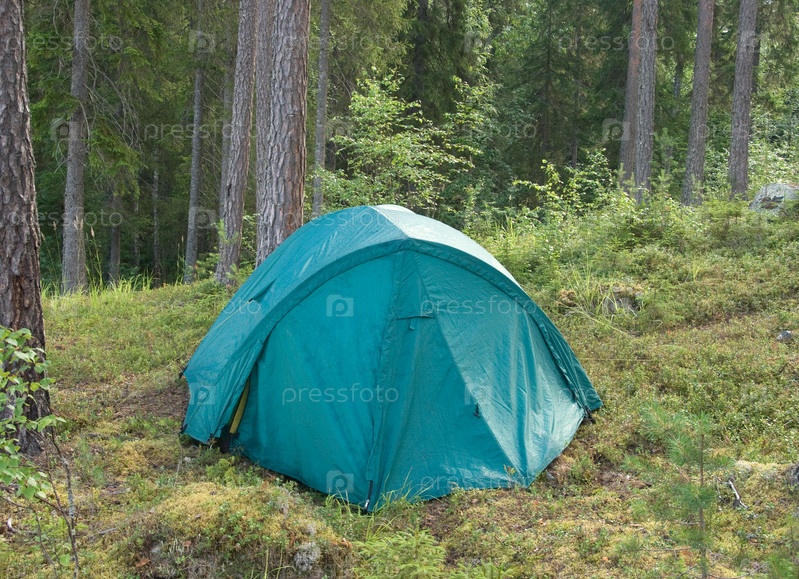 Зеленая палатка в карельском лесу