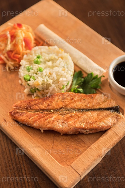Стейк из семги с рисом