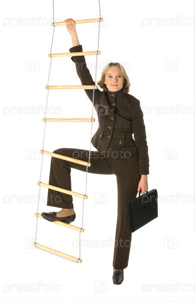 Бизнес-леди поднимается по веревочной лестнице