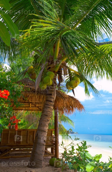 Бамбуковая хижина на тропическом пляже