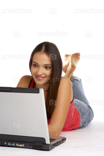 Девушка за ноутбуком