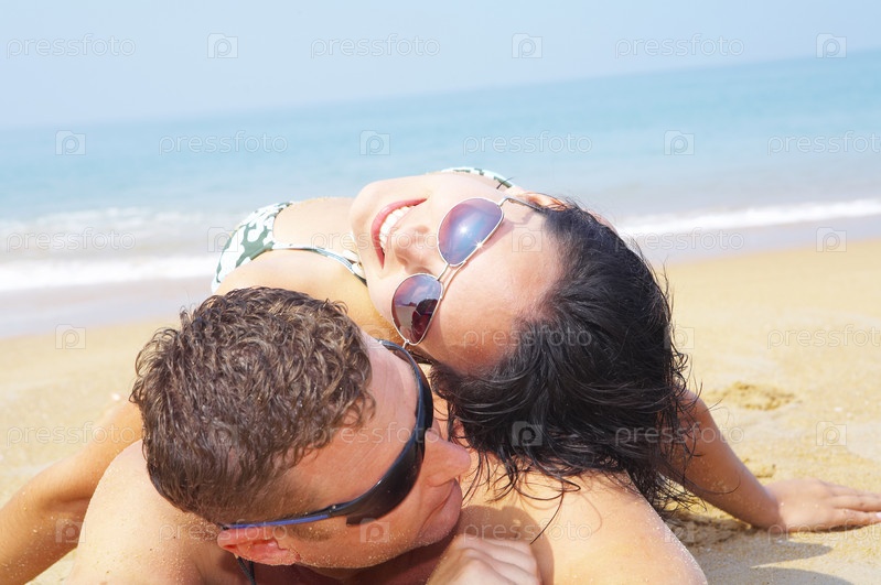 Пара отдыхает на пляже