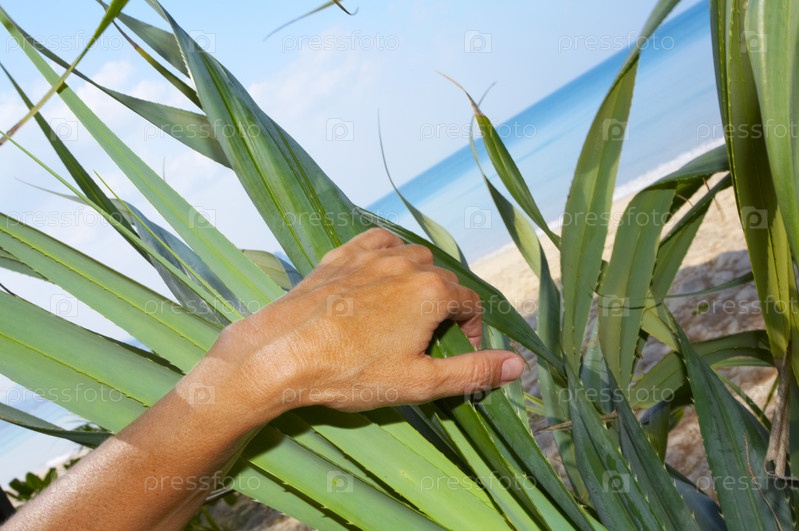 Женская рука раздвигает кусты