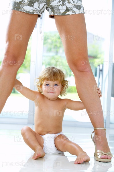 Ребенок держится за ноги матери