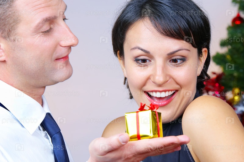 Женщина радуется подарку