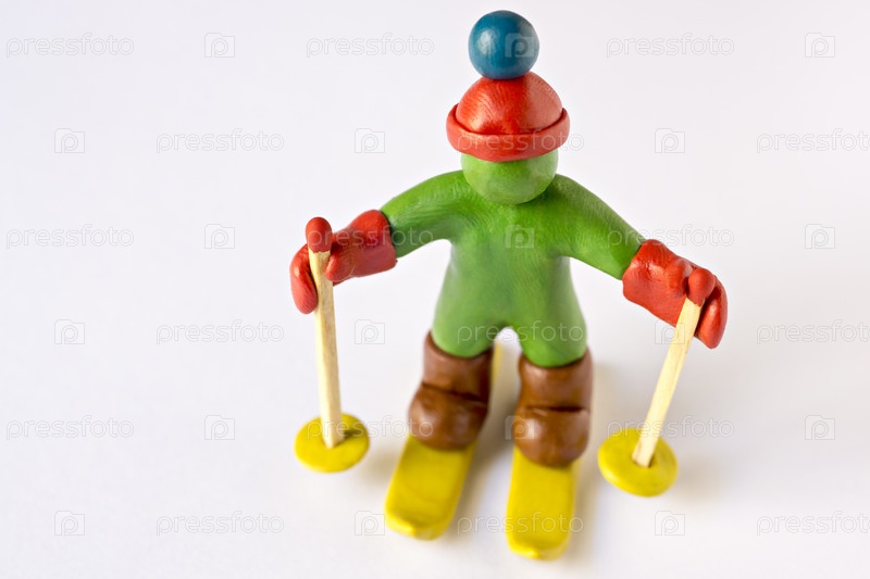 Зеленый лыжник из пластилина