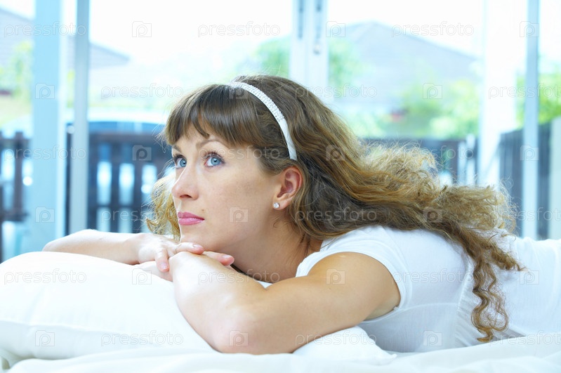 Портрет молодой женщины в спальне