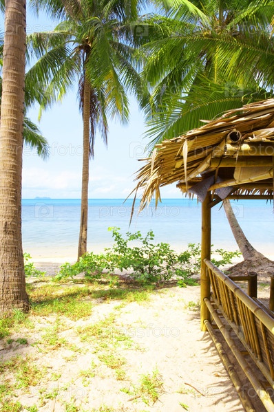 Экзотические бамбуковые хижины на тропическом пляже