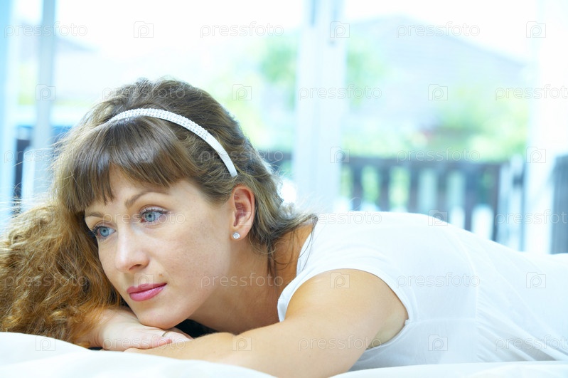 Портрет молодой женщины в спальне