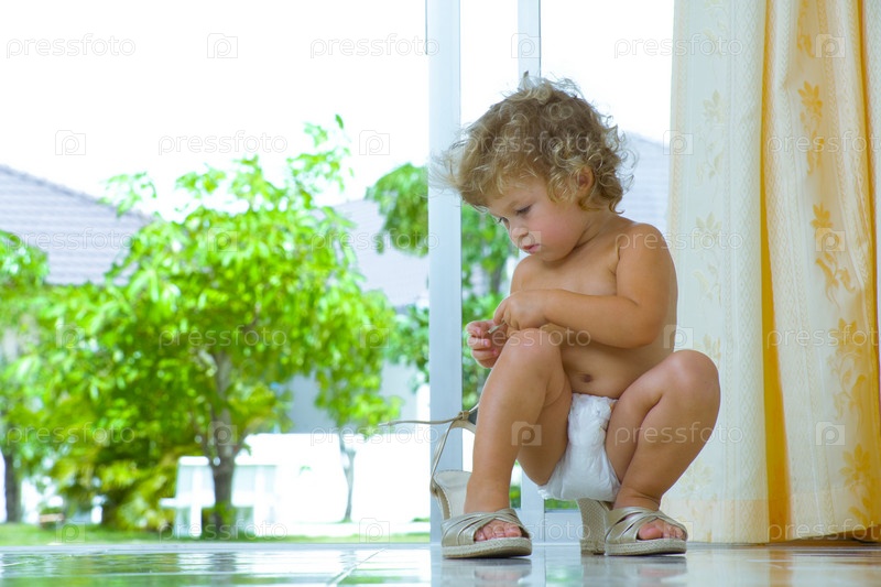 Ребенок меряет мамины туфли