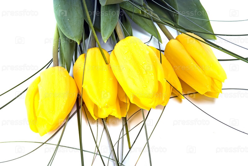 Букет желтых тюльпанов на белом фоне