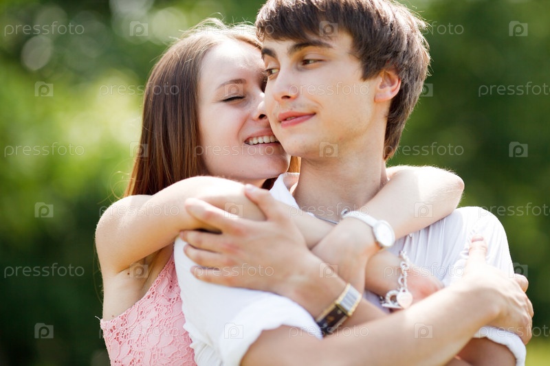Молодая влюбленная пара на улице летом