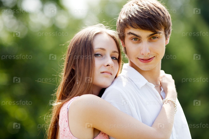 Молодая влюбленная пара на улице летом