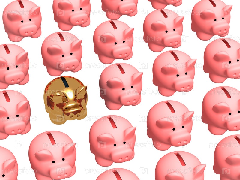 Золотая свинья-козырька, стоящая в ряду одинаковых козырей