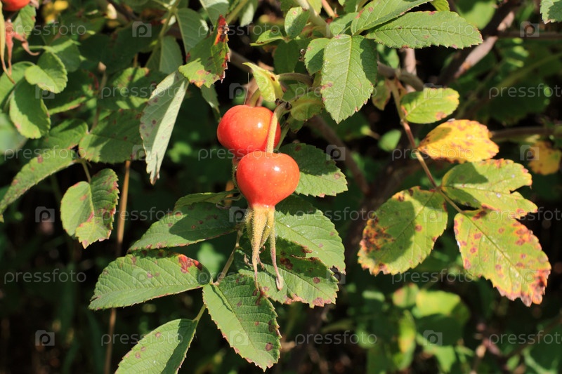 Ягоды шиповника на кусте