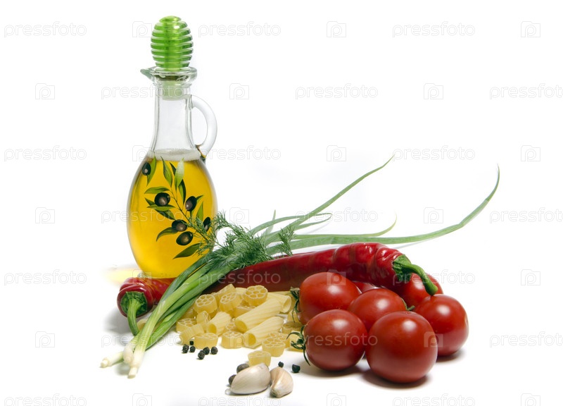 Ингредиенты для приготовления пасты на белом фоне
