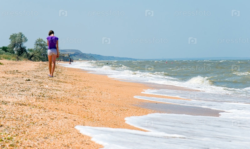 Девушка идет по берегу моря