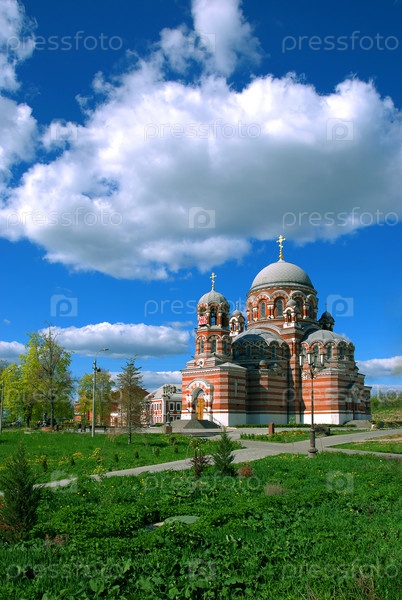 Православный храм посреди парка