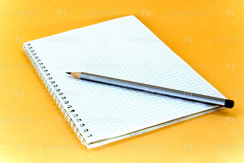 Карандаш и тетрадь в клетку на желтом фоне