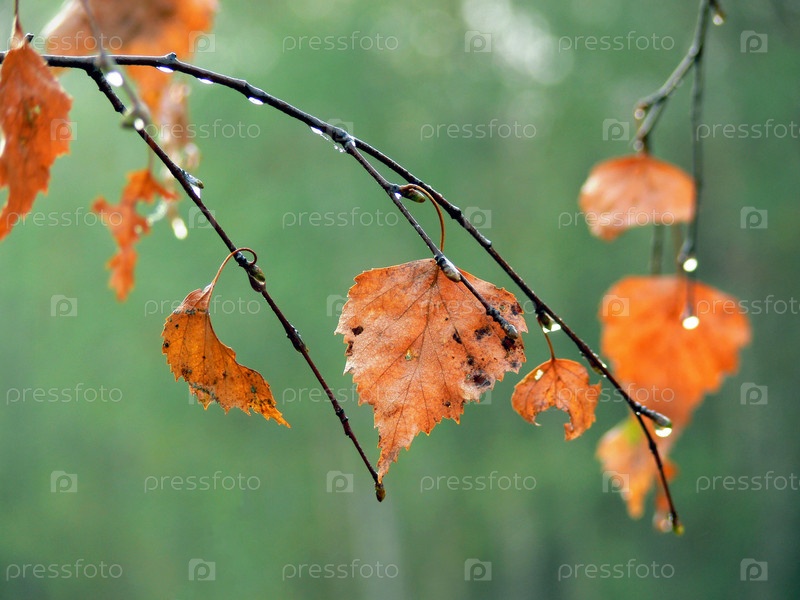 Ветка с мокрыми осенними листьями