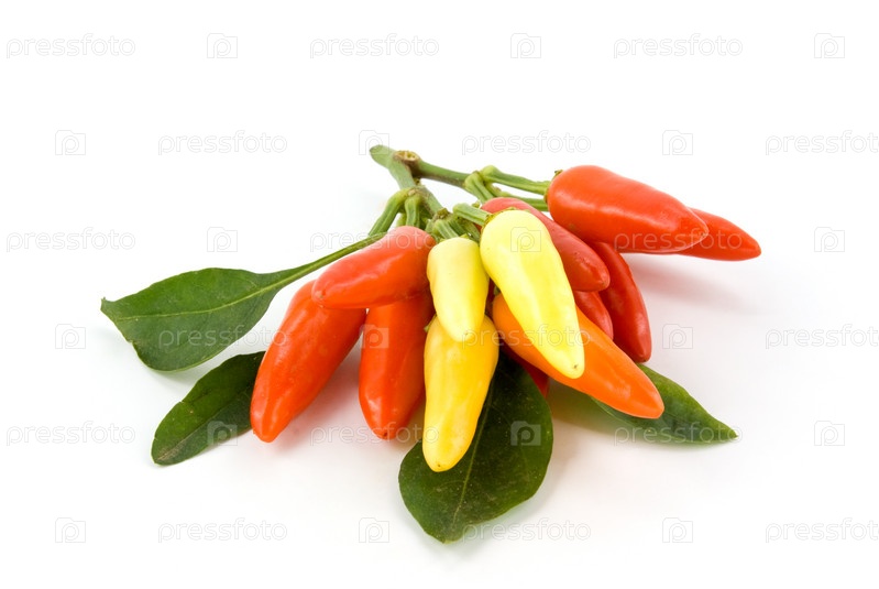 Красный и желтый перец на белом фоне