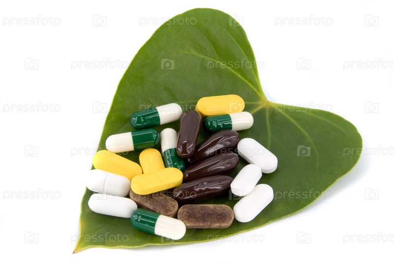 Капсулы с лекарственным препаратом на зеленом листе