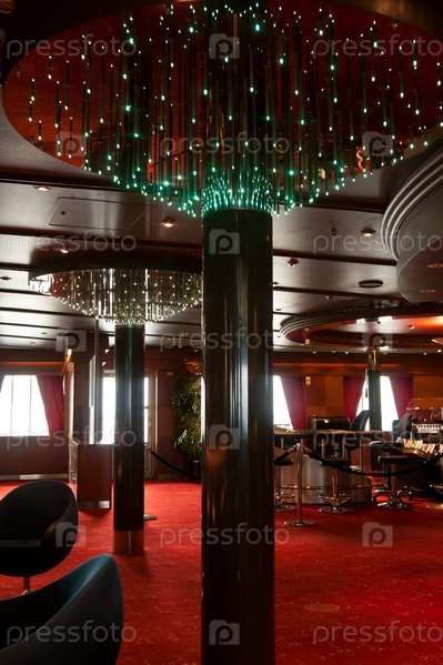 Интерьер ресторана с красным ковровым покрытием на борту корабля