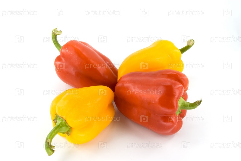 Красный и желтый перец на белом фоне