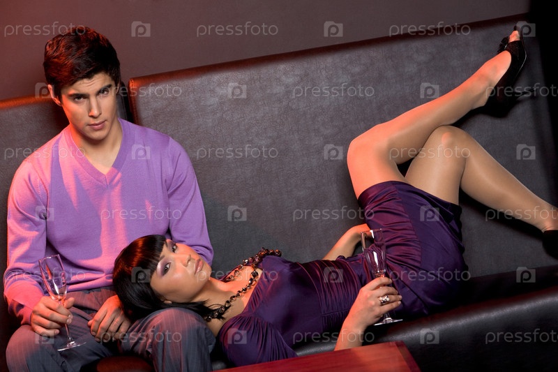 Портрет роскошной женщины в вечернем платье со своим бойфрендом, сидящим рядом