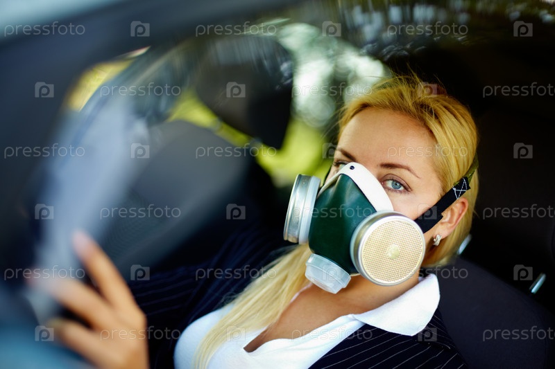 Женщина в респираторе за рулем автомобиля