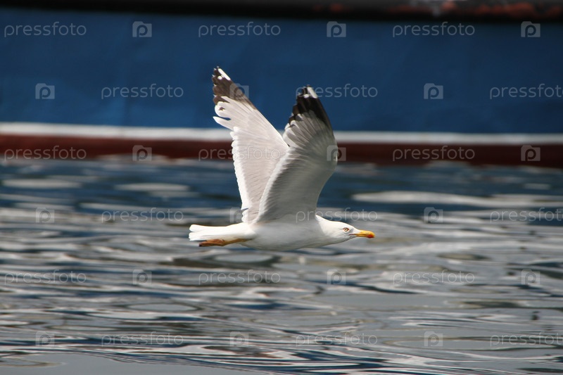 Белая чайка над водой
