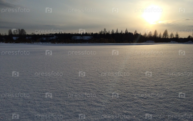 Зимний закат над полем и лесом