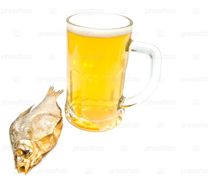Стакан пива и соленая рыба