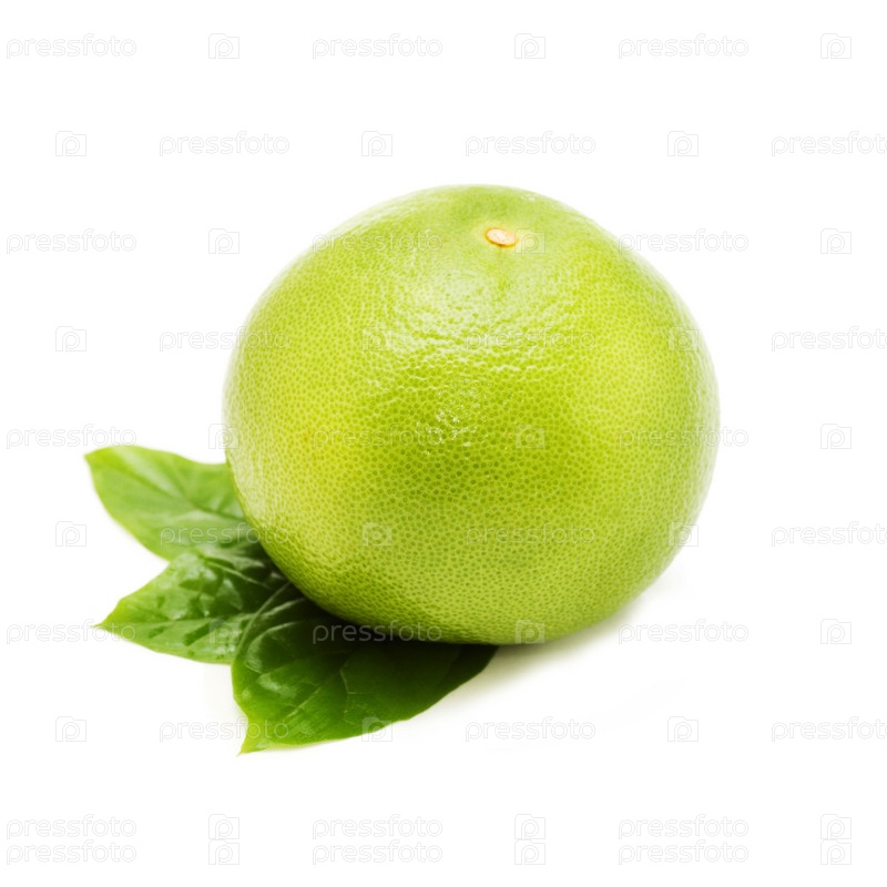 Зеленый грейпфрут с листьями на белом фоне