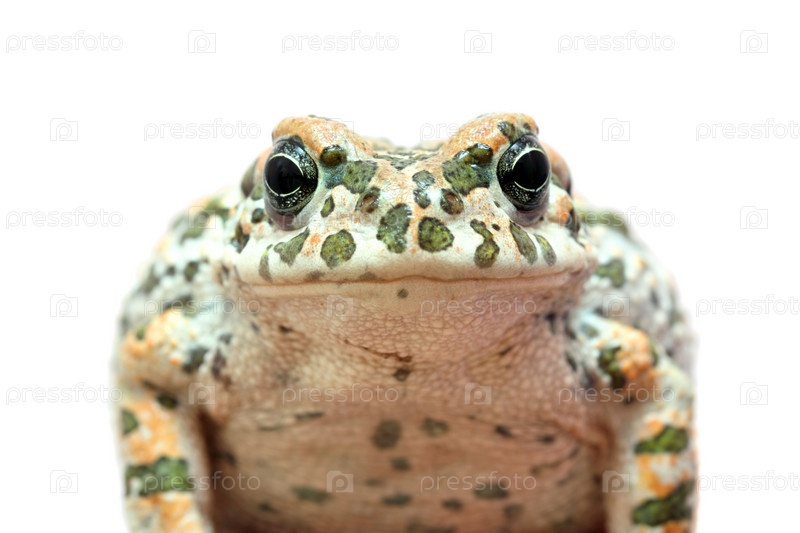 Пятнистая жаба на белом фоне