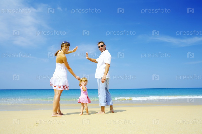 Семья отдыхает на пляже