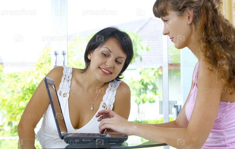 Портрет двух женщин у компьютера