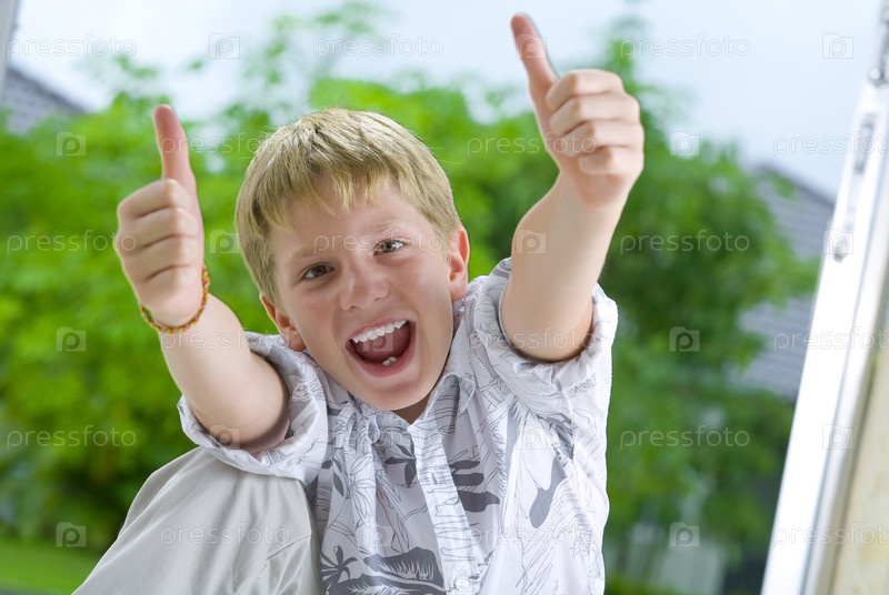 Мальчика показывает большие пальцы