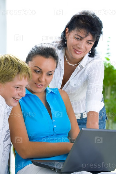 Семья с ноутбуком
