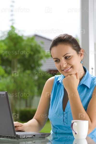 Женщина за ноутбуком
