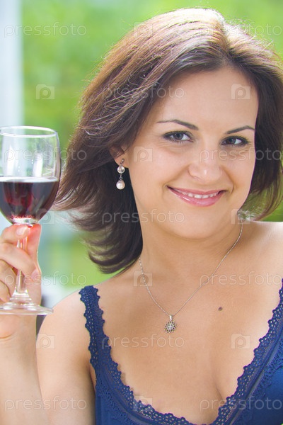 Портрет счастливой молодой женщины с бокалом вина