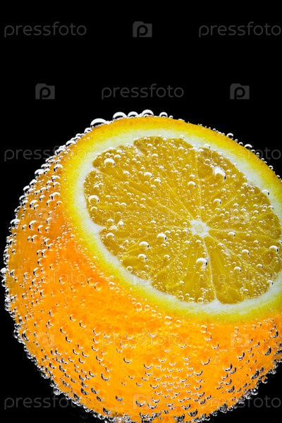 Ломтик апельсина на черном фоне