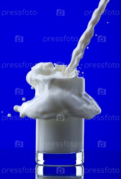 Стакан наполняется молоком